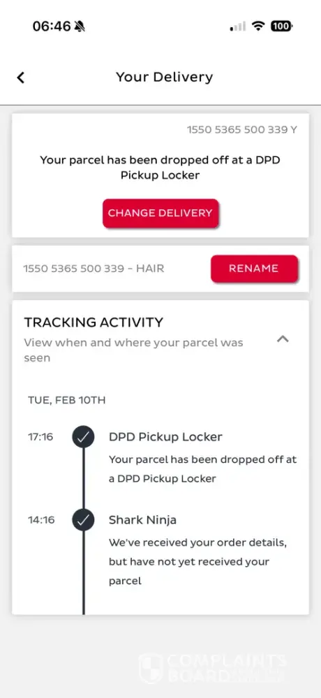 Contacted DPD online chat, they said the delivery hadn't been made and the parcels were still at depot. Unable to go further they told me to contact customer services by phone, again l was told the parcels were still at depot, this was despite me having a photo of them at the delivery address. I said l wanted the parcels collected and delivered on the scheduled day. The agent stated he would have to contact the depot manager by email and as it was late Friday afternoon l would be contacted Saturday morning.