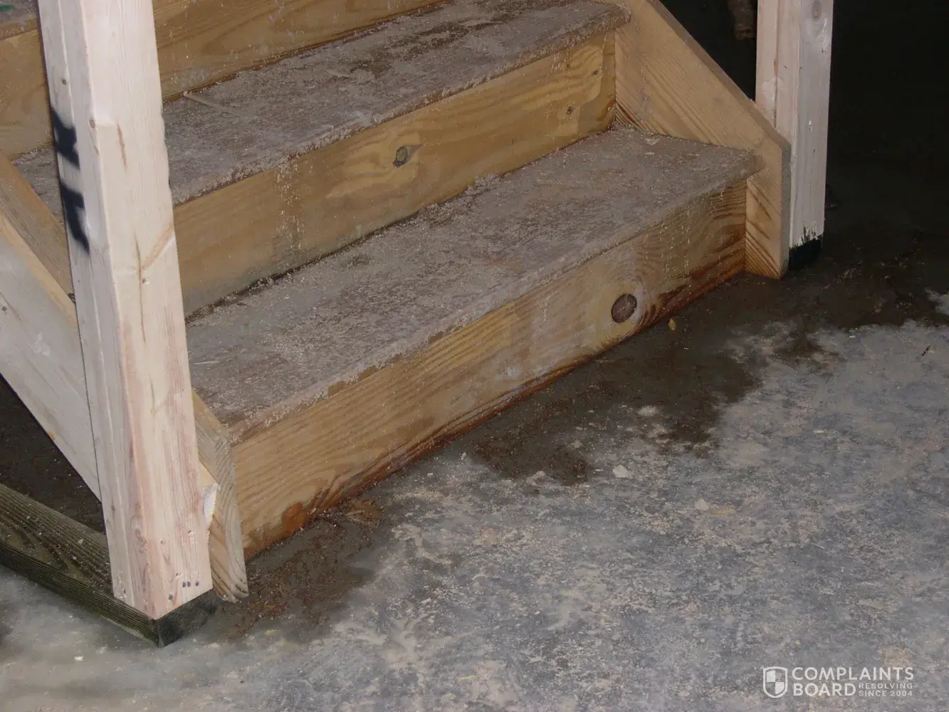 Wood stairs were left out in the rain, plumbing in the basement leaked, 2x4s were cracked and of low quality, etc. The builders representative verbally offered their "guarantee" that all problems would be fixed!
