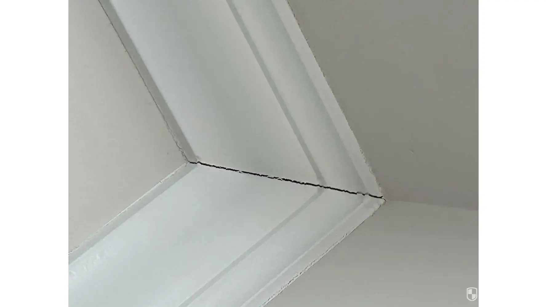 1. The corners of the crown molding on the ceiling have separated and show cracks.