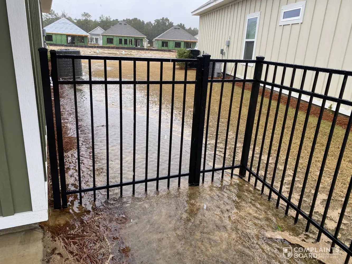 I have contacted DR Horton in Panama city FL. They were receptive to start but now I'm ignored. Was told by Derrick Hano after he looked at the property that they would put a drain and stone in to fix the problem. I do have photos and videos.