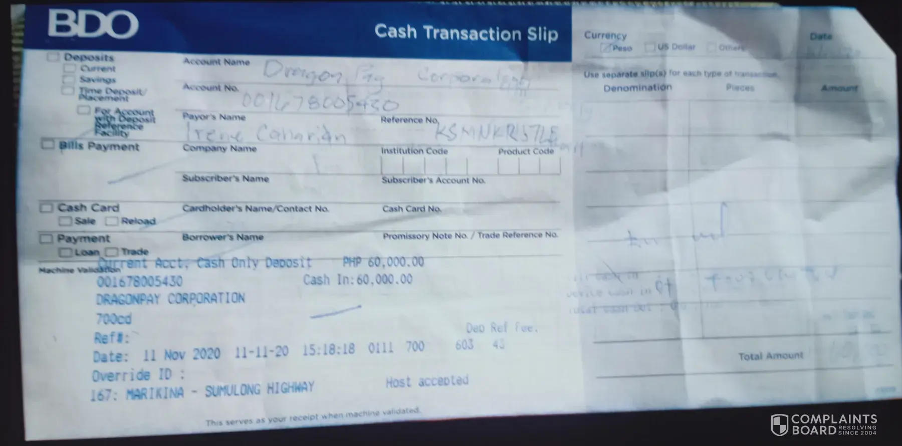 I contacted them the following day June 17, 2021 via phone and they told me to contact ZOTOPAY directly. This is not right because i did not deal with ZOTOPAY but with DRAGONPAY only. Until now I have not received a clear answers from them.
