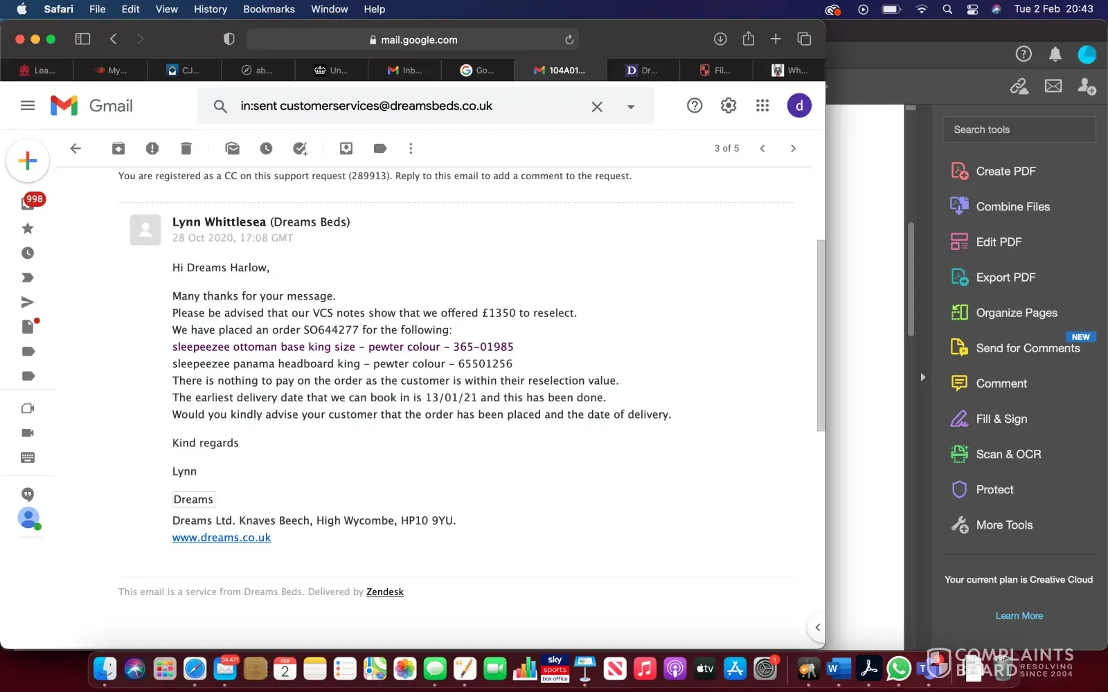 This email is a service from Dreams Beds. Delivered by Zendesk