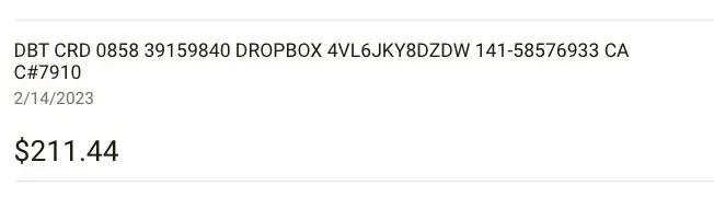 You charged me $211.44. I've included photo of actual charge below. Information from your Dropbox charge to my bank: