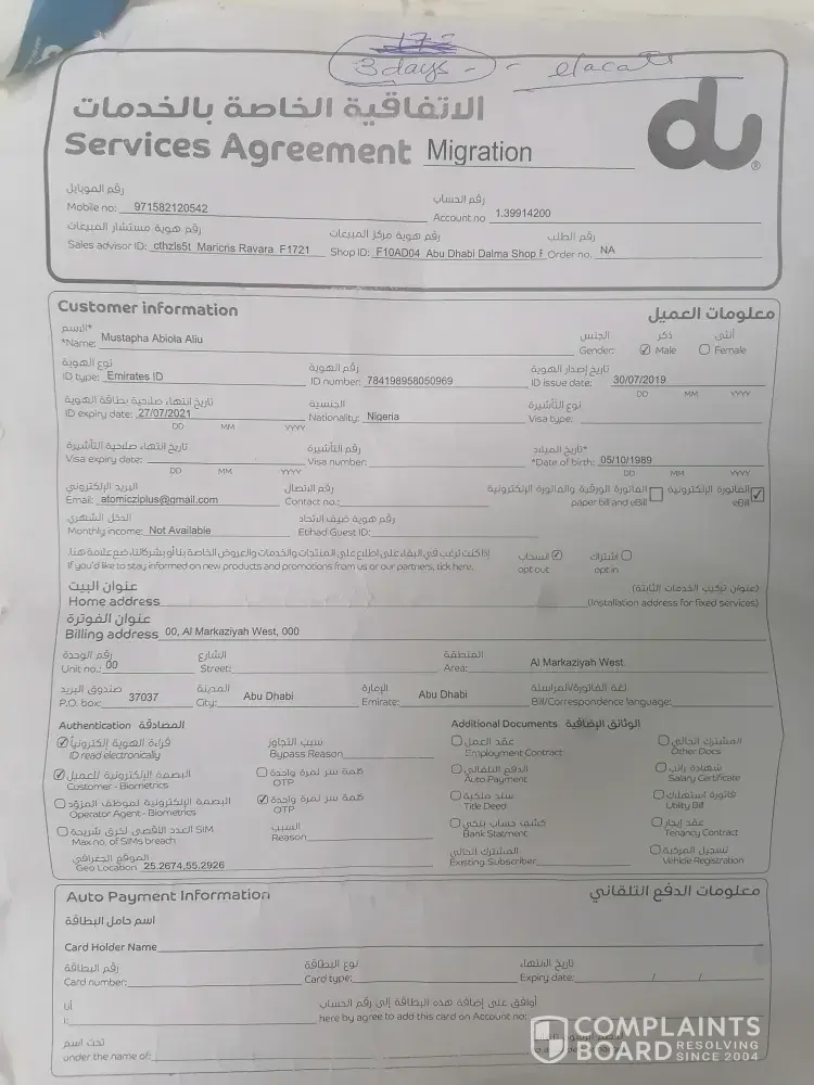 Du customer care showed excellent support via mail and I provided them a copy of all my official documents that one requires to maintain his account in a legal manner that includes passport copy, visa copy, Id copy and a Noc letter for my friend to solve this problem on my behalf as I am unable to travel due to travel restrictions related to covid.