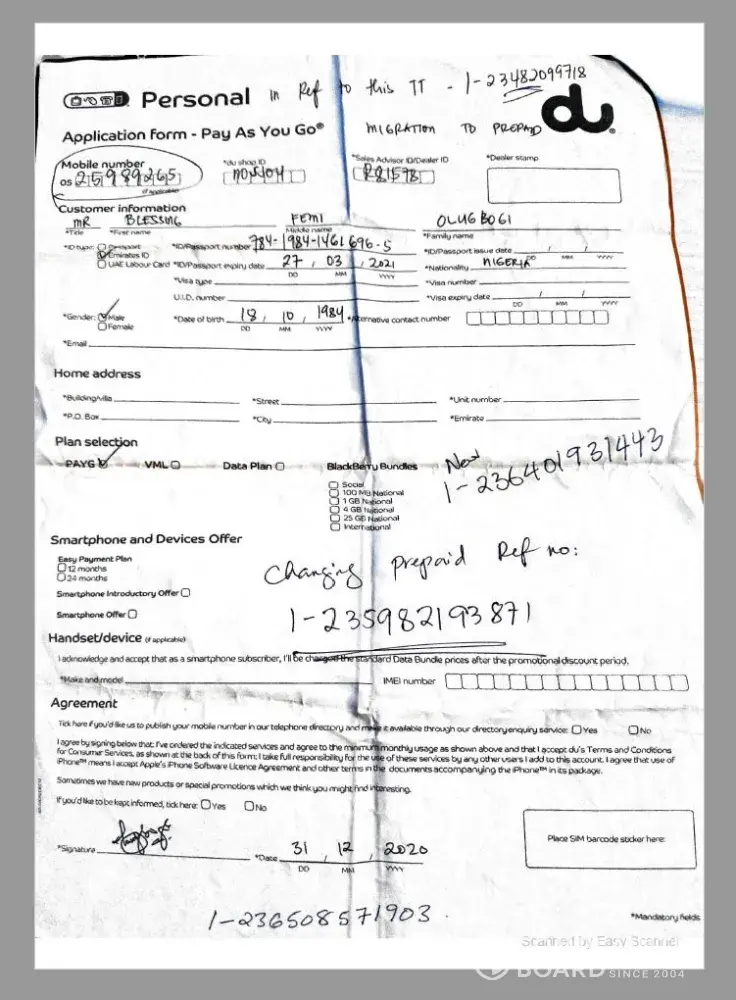 I am attaching my passport copy, Emirates ID scan ( supposedly not valid anymore ) along with the receipt of the payment which was made.