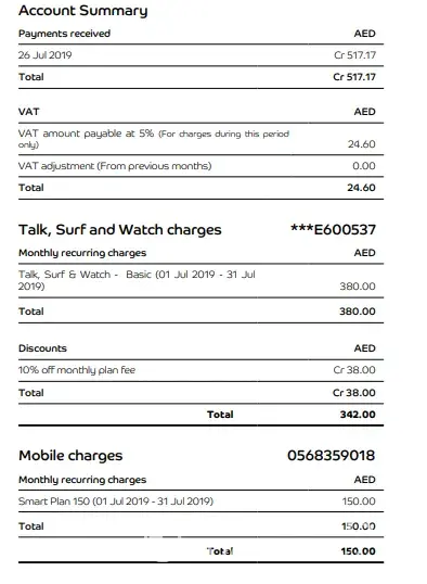 The Etisalat bill attached is showing one mobile number [protected] ) it not belongs to me also.(somebody else phone number)