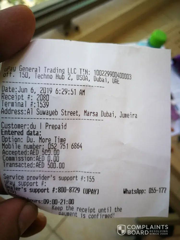 Du account no is 1.[protected], the customer care failed to produce the documents as a proofs for the phone which was issued .