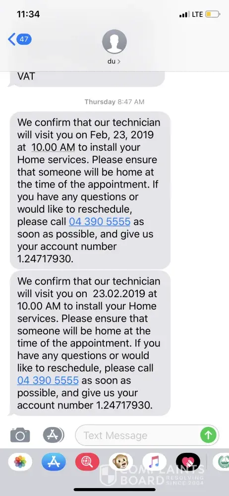 Meanwhile I got a message that bill already came for the previous month and I`ve been charged for the whole one, despite that due to Du service I didn`t have internet already for 2 weeks.