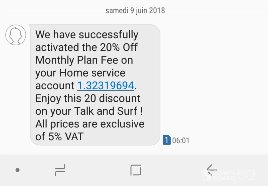 9 of June, I have received a text confirming the activation of my 20% discount on my home services.