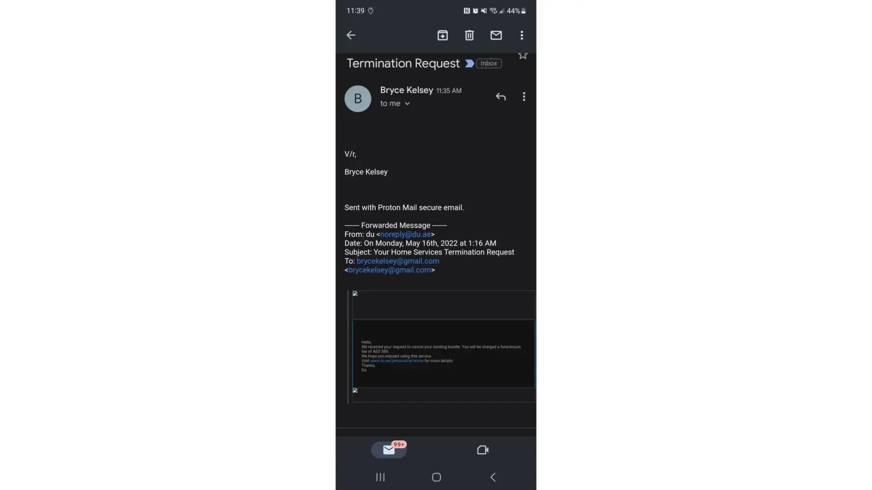 One month before leaving the UAE I informed DU telecom regarding my exit and disconnection. DU telecom told me to inform DU telecom 3-4 days before leaving the country and I will receive a call for the disconnection. I informed DU telecom for disconnection by going personally and through calls 1 week before in advance but did not receive any call from DU telecom for the disconnection.