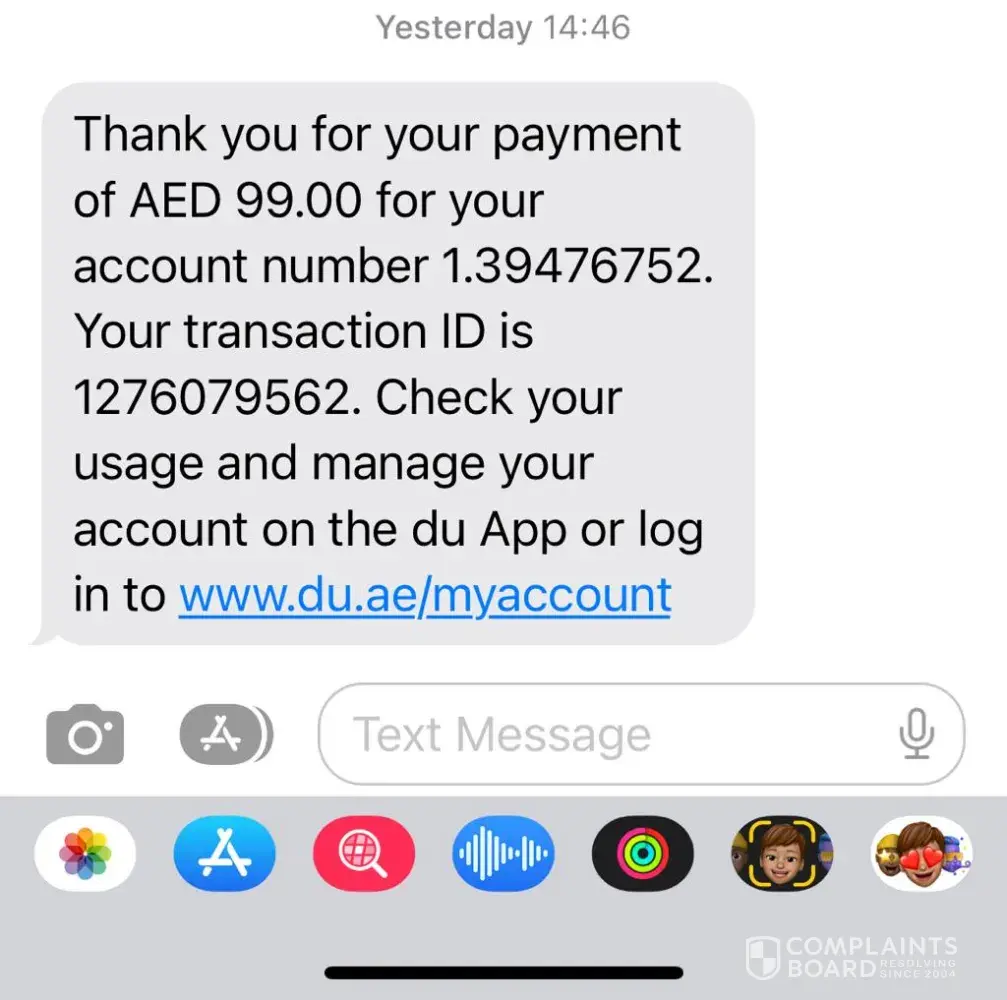 Surely this is not my fault, as contractually it is Du who is in breach of not providing the agreed service, yet expect prompt payments each month.
