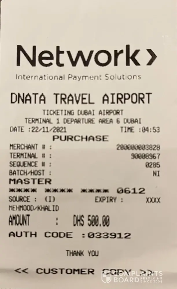 22 NOV 2021 Dnata travel airport worth DHS500.