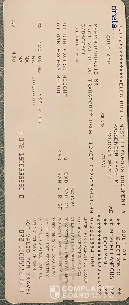 22 NOV 2021 Gulf air EMC worth 450AED,