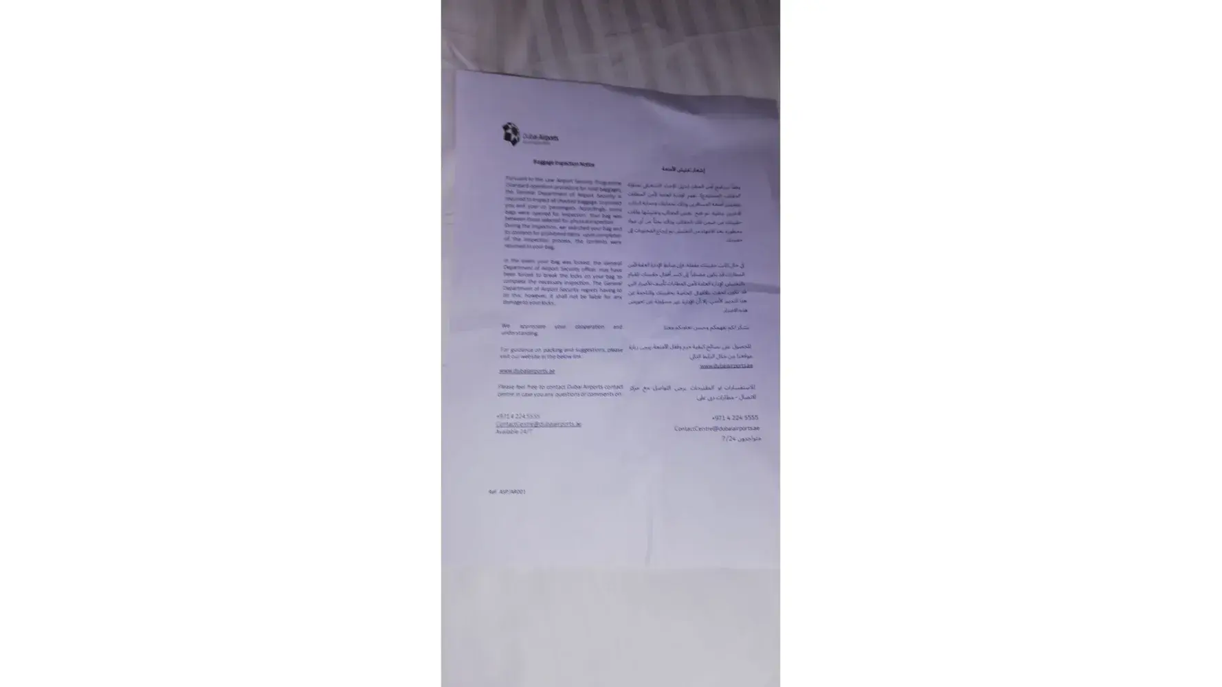 Item missing in my suitcase after baggage inspection dubai airport 19 of june 2022