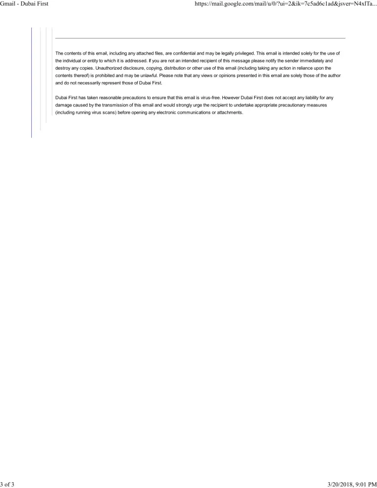 However, I got a call from her today and she started shouting at me asking why I had sent the email and that it is my responsibility to contact their beneficiary and ensure they receive the payment. Her behaviour was extremely rude and I had to disconnect the call as she was shouting at me. I have been trying to sort out this issue from my end as much as possible but I do not have a control on what the process is followed by the beneficiary of Dubai First. This seems like it has become my responsibility to sort out the issue, although it is very clear that the issue is with the payment process which Dubai First has established with their beneficiary.