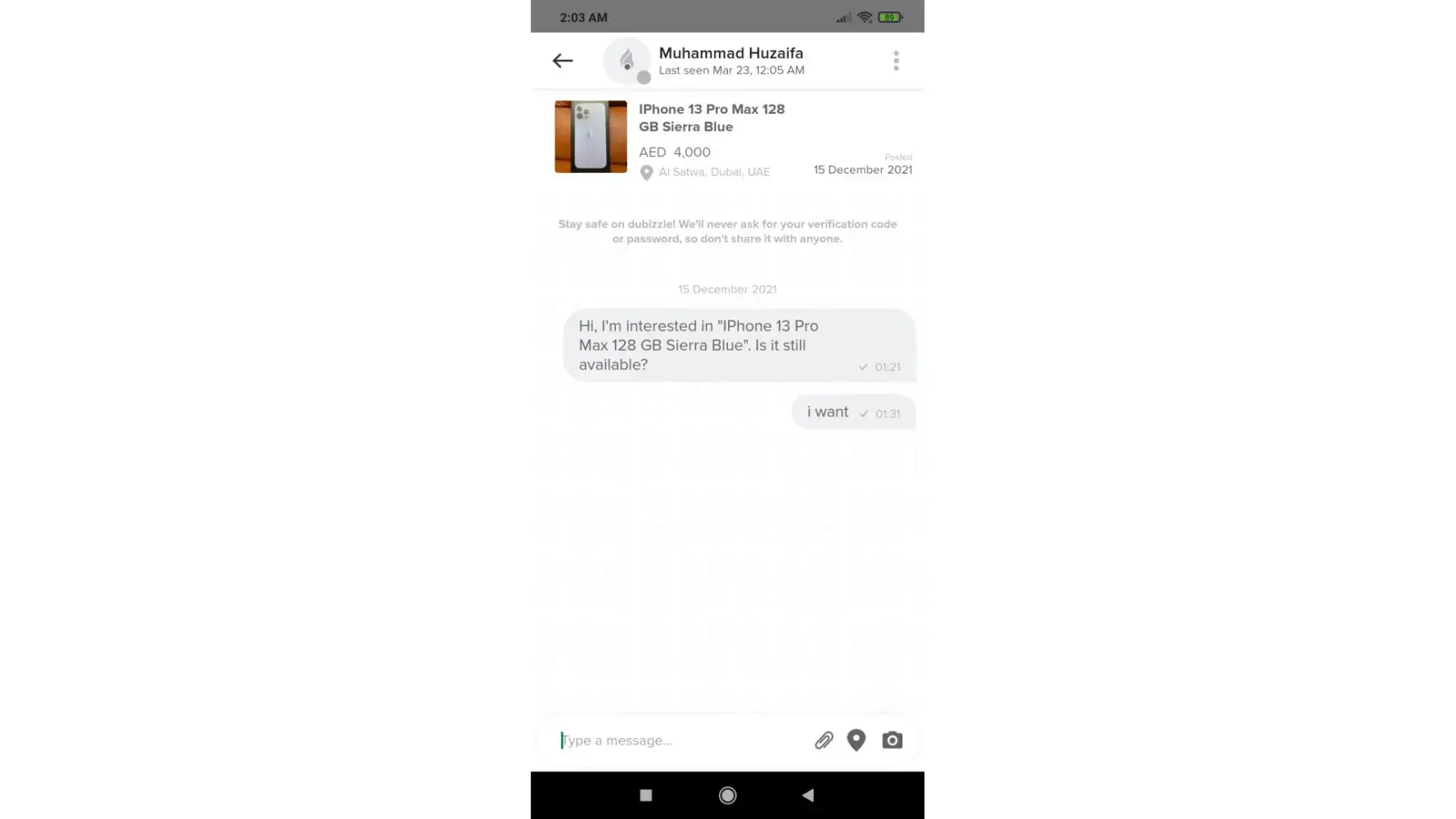 Desired outcome: response from dubizzle