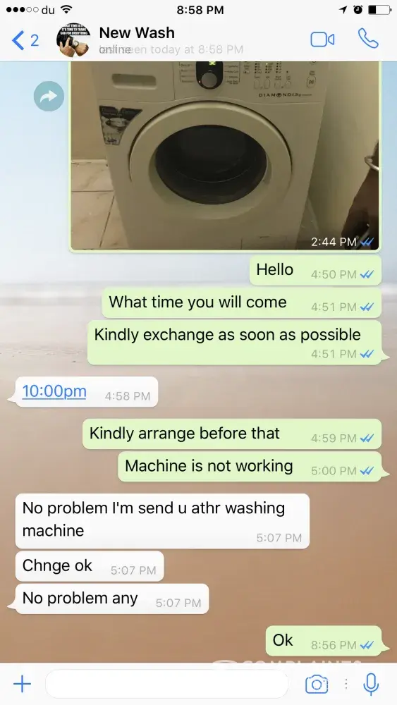 I have purchased used washing machine and fridge from dubizzle. The seller told me that it is good working condition and I booked these two items. After that he told me that if any complaints he will change the product. I got this items yesterday afternoon. But the delivery man said he doesn't have time for waiting while we check the product, so he told to give the money and he said you have the number so you can call if any problems you find. But the washing machines are not working we are tried to call the owner and the driver after the checking, the phones are not reachable and also no reply for the whatsapp messages.