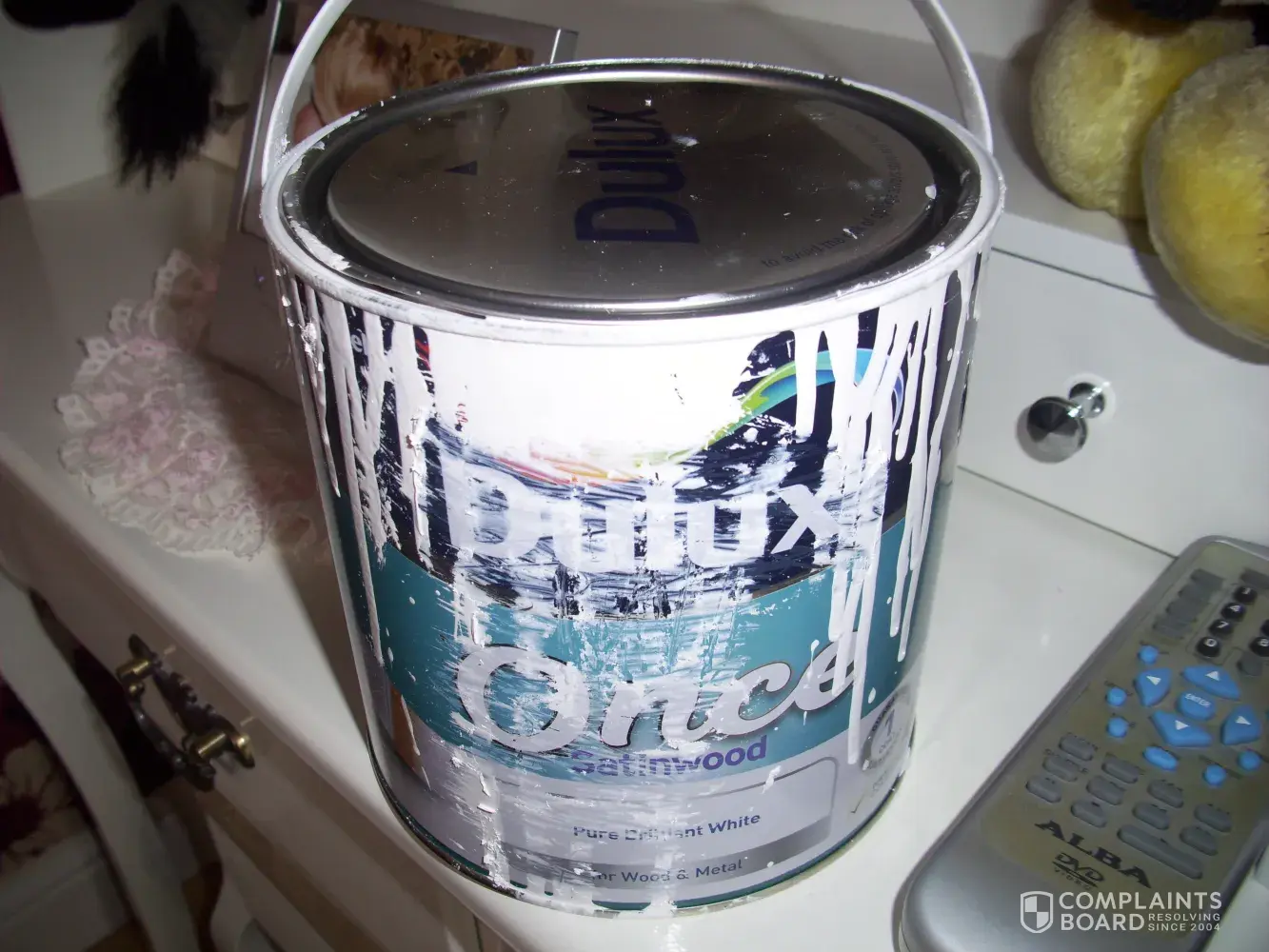 We bought a 5 litre tin of the Once Caramel Latte Emulsion paint to do our hall, stairs and landing as it is a large area and thought it would be ideal as it was a once coat paint. How wrong were we. We had taken a lot of time in preparation of the walls. We did one coat and there was streaks so we left it until the next day and applied another coat. But still the finish was streaky and a very poor finish. We then bought another 2.5 litre tin and a different roller and applied another coat but still the same so again another 2.5 litre tin was purchased and applied and still the same. We have now been and bought a 5 litre tin of the standard emulsion in another colour and are now trying this. We are now at the end of our tether and so despondent with the whole thing. I am sending this complaint as I am hoping that you will as a way of compensation to us send us a voucher or gesture of goodwill for our heartache