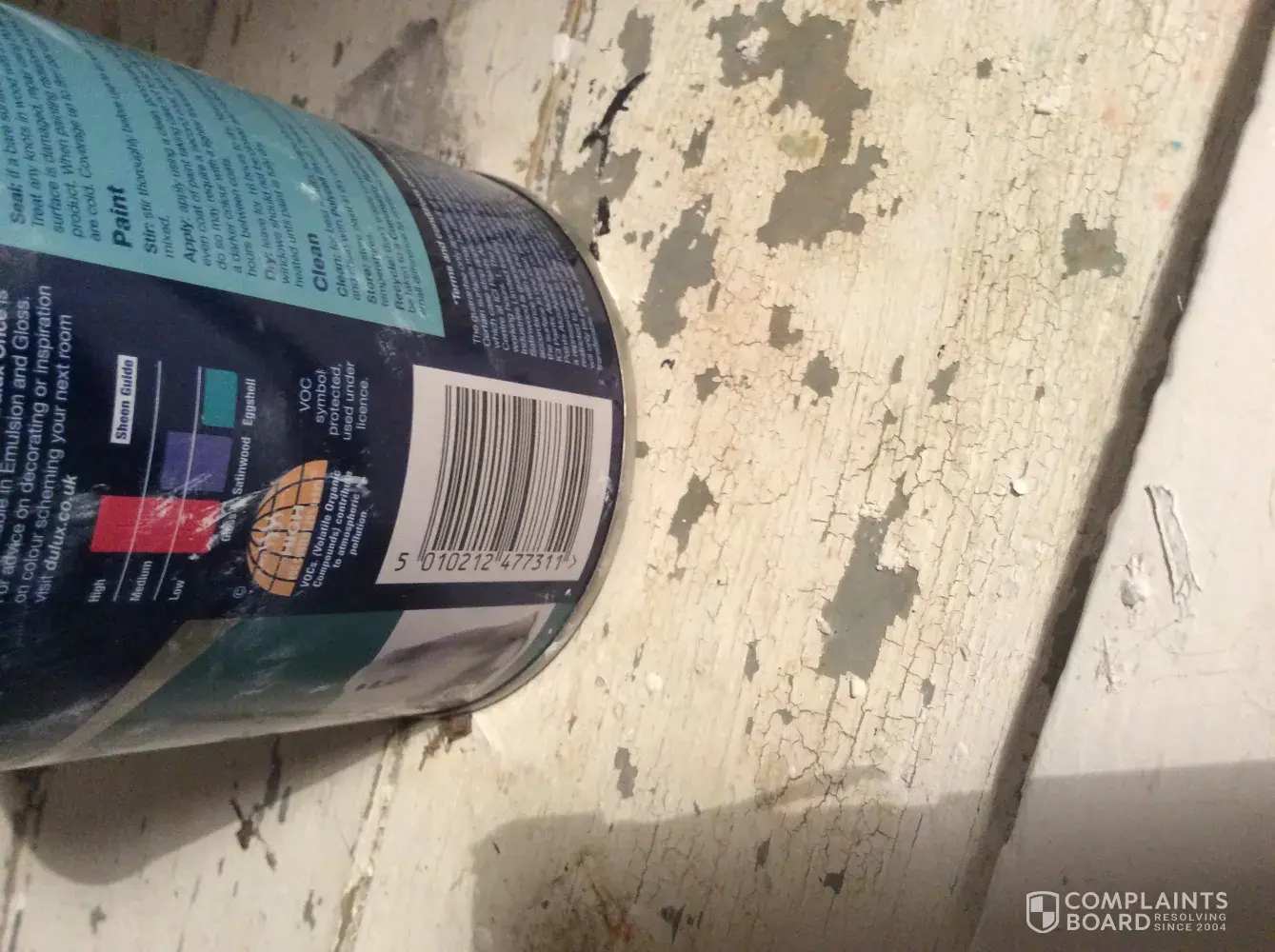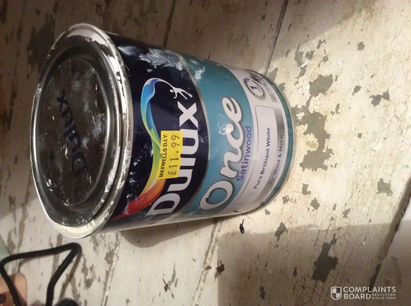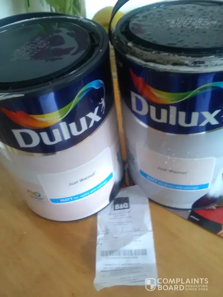 I bought the paint from B&Q on the 28th February as you can see from attached pic. I have always bough Dulux paint and never had this before but I am quite annoyed that it looks like I am going to not only buy more paint but also re paint the three areas.