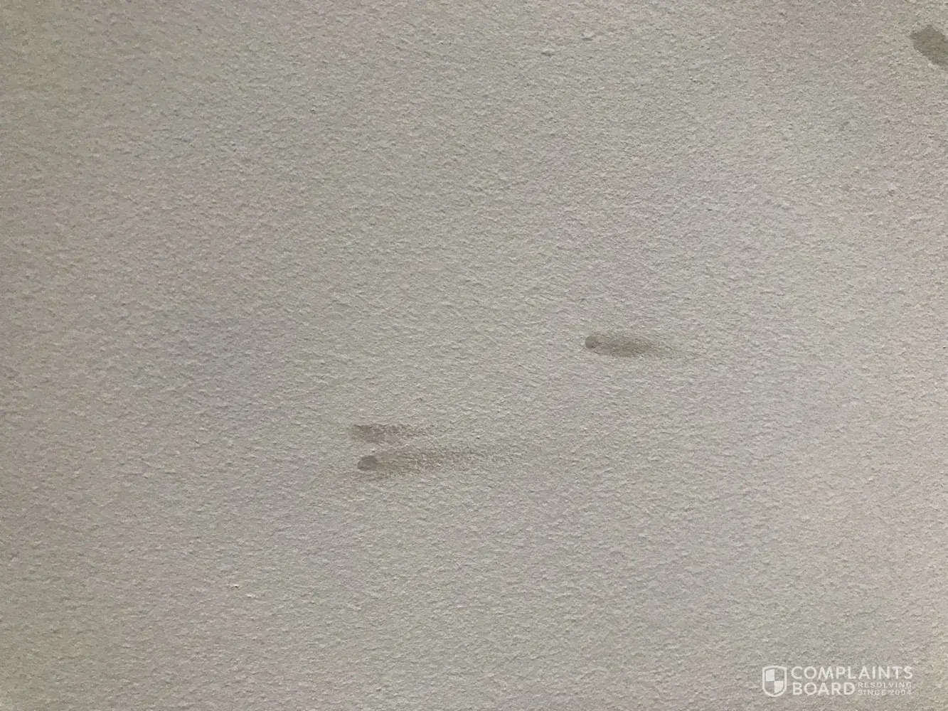 Product code : [protected], I have on two of the days found areas as I have shown in the pictures. The reason they have smeared is because I have tried to remove the spots of what smells a little like oil but doesn't feel like it. So what is happening is that on these days spots are appearing on different parts of the walls. I have also tried with some absorbent paper to blot the spot of liquid but it just leaves a round dark mark.