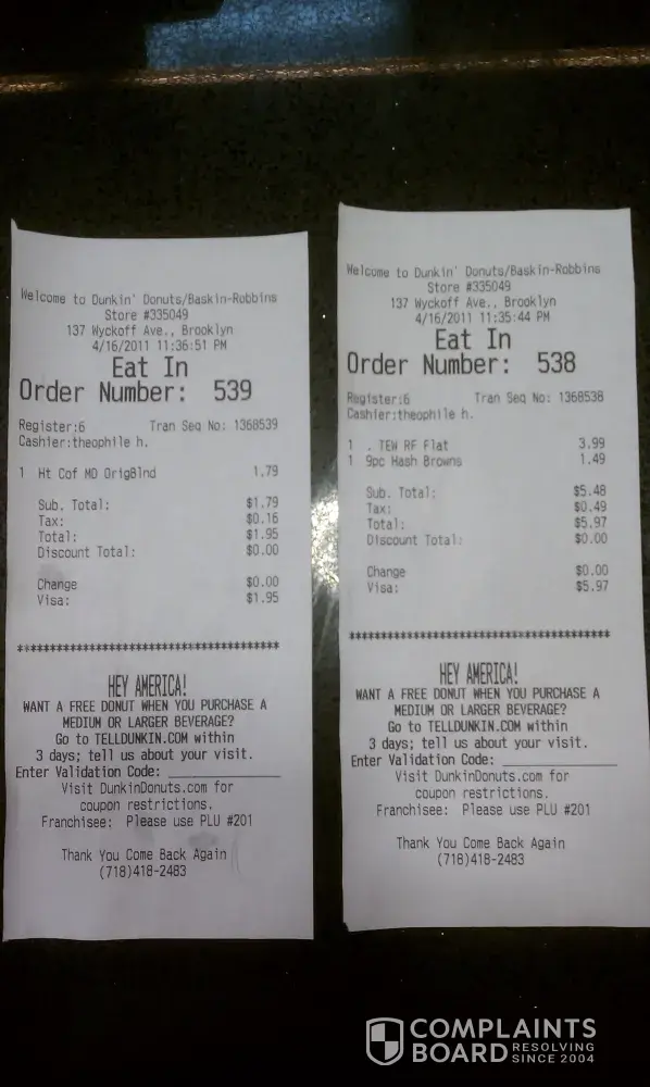 Dunkin' Donuts Complaints Page 22 of 28