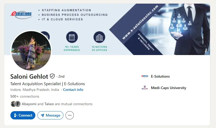 e Solutions Inc. is a scam outfit, they send fake job ideas to you take your resume and then disappear saying you were not qualified. They screwed up and a month later emailed me the same job with lesser qualifications. Avoid these scammers and report them to the FTC and FBI.