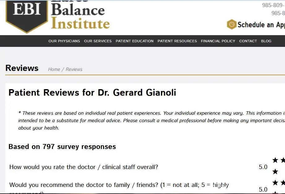 This profiteer is rating himself in his own web site company as a five star doctor with 797 survey responses, however, he only posted 202 reviews. Where are the remaining 595 reviews? "Individual experience may vary" suggests the doctor himself...