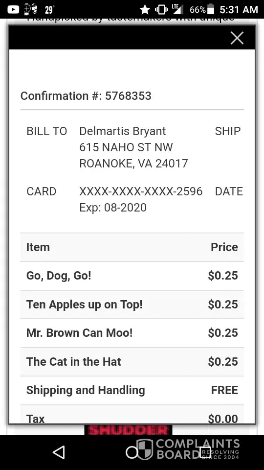 I ordered books on Dr Seuss birthday for approximate amount of $ 6. After that I did not order any books but I can see that my credit card is charged an amount of $20 on 8th march 2017.