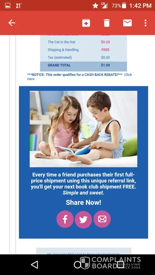 We're very sorry that you weren't able to resolve this issue with our customer service team before writing this complaint, but we're happy to help however possible. We want to reinforce that we are certainly not a scam, but rather a well-loved subscription program, and we've helped thousands of families collect home libraries of favorite children's titles since the 1960s. We're sorry to see that you did not realize you were subscribing when you ordered your deeply discounted or FREE welcome package. In order to check out, you must review our terms and conditions and click AGREE, agreeing to our membership terms. If you missed the details in doing so, we're sorry for the misunderstanding.