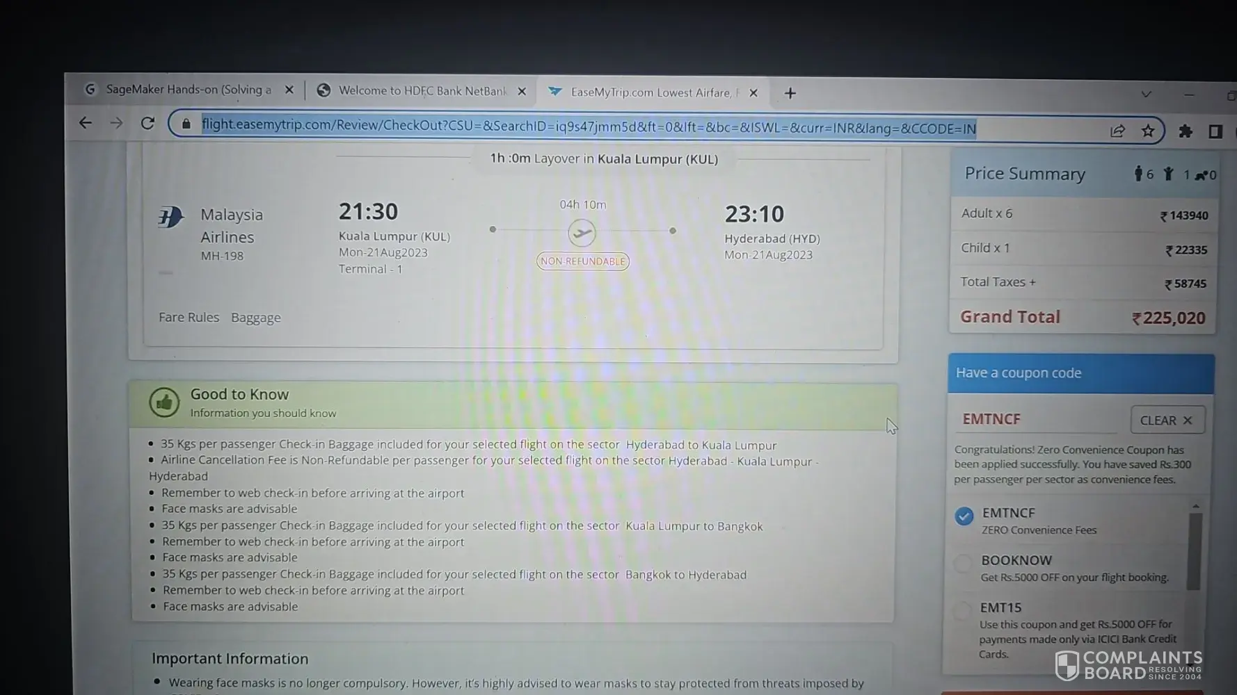 Going forward, I'll be wary of using EaseMyTrip and will definitely do my research to make sure I'm able to get all the information I need to make an informed decision before making any travel bookings.