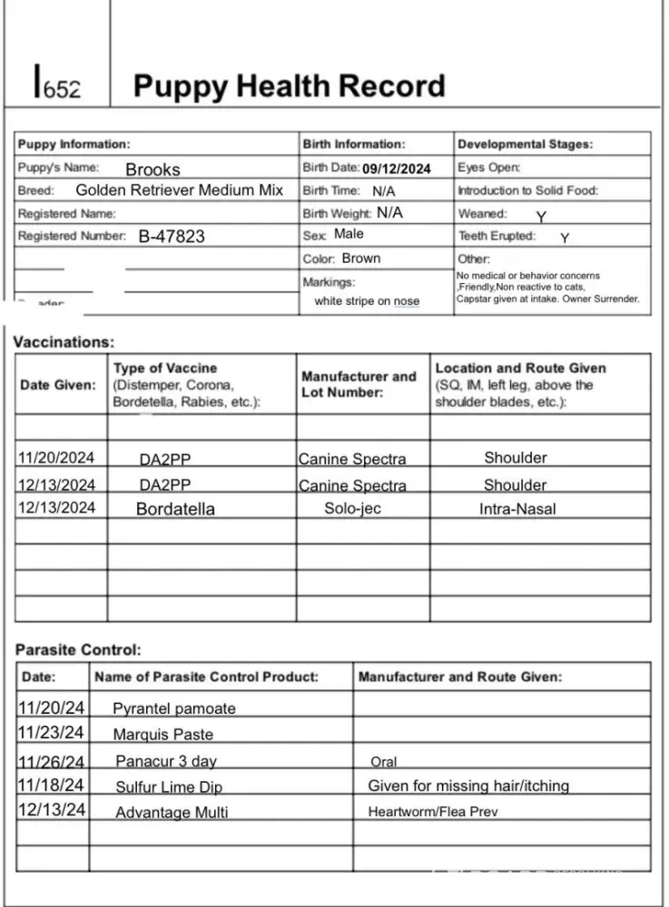 The entire process felt unprofessional and suspicious. No representative from the organization was present for the adoption, no paperwork was provided, and I was asked to pay via Zelle using the "friends and family" option, an unsecure method of payment. The fee was $350 instead of the $250 minimum listed on their website. Additionally, I was promised the puppy’s medical records via email the night of adoption, but I never received them. I reached out to the "Medical Coordinator" on December 28 and received no response. After multiple attempts, I finally received a text from Jessica Martin on January 7. She acknowledged that I should have received the records and promised to resend them, which she only did after I contacted her again the following day. The records I received appear questionable and falsified with no Veterinarian listed.