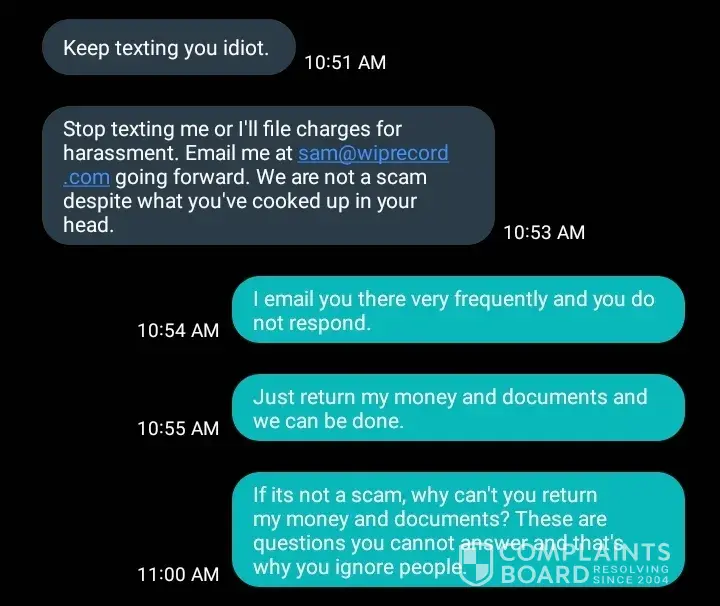 On August 30, 2023 I retain the services of Wipe Record to expunge a misdemeanor on my record. I paid them for their services, received some official looking emails stating the services that were to be provided and the timeline of events. I had one scheduled meeting over the phone about a month after initial contact where they stated that they were starting on the case. They have missed the most recent scheduled meeting and I have not been able to get ahold of them. Their phone numbers are disconnected and the emails I send get bounced back as undeliverable. I believe I was scammed and that I will not hear from them again. I am out $1,100 and no closer to expungement.
