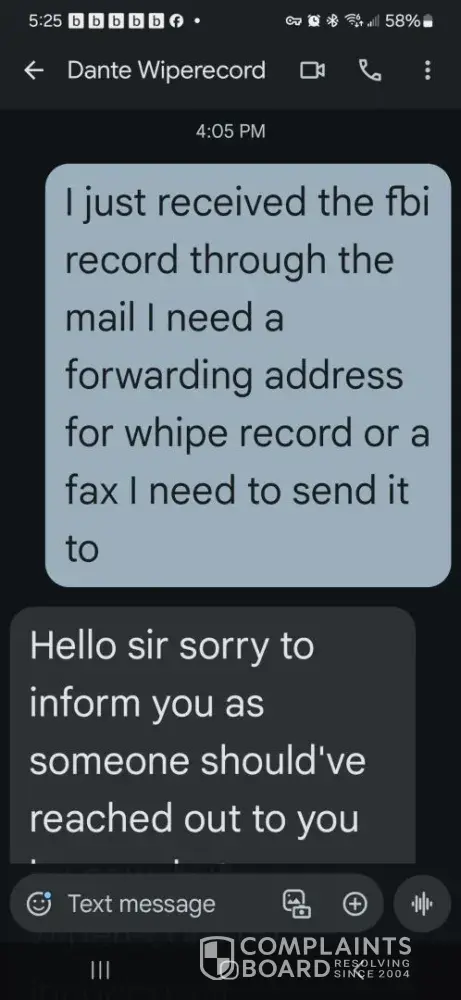 Ive been dealing with Wipe Record since July. I paid them $1000 to expunge my record. I told them early in the process I was concerned with their lack of follow-up to my emails and voicemails. I figured I would give them some time and I followed up with them in January *** the drafting stage. That was completely unacceptable to me and the paralegal that has my case has not responded to any of my emails or voicemails. I feel completely scammed out of $1000. Wipe Record has exhibited poor customer service and zero transparency. Finish the job or refund my money, its that simple. I paid them and did all the legwork that was required for them to process my case. Do your job or refund my money. This company has completely ghosted me.