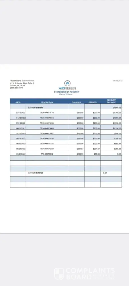 I signed on with Wiperecord in November . Initially I paid around $400.00 and then suspended the payments because of unemployment. However, I was finally able to pay the remaining amount of the balance to hopefully complete this process. A couple of weeks later I was told that I didn't qualify. What? How? Wasn't there a research perform to establish qualifications beforehand? They said upon examining more closely the documents that I actually was not a good fit. Yeah, after you received my money! This is the kicker, they said it's not an actual Deferred Adjudication, nor a conviction. Really? This case was back in 1976, over 40 years ago and I successfully completed 1 year of probation and the case was dismissed. Now, go figure. What documents did they examine? All of this happened TODAY! So, I was told I will get a refund, however, it will not include the research fee. Yeah, pointless RESEARCH...Funny how it was determined after you received all of the money that I wasn't qualified. Then I was told for an additional $200.00 they could remove my name from certain background check companies. Wow! I DON'T THINK SO! I'm literally in tears at the unprofessionalism I was subjected to. To take people's hard earned money without a blink of an eye is just heart breaking to say the least. I'm 61 years old and have lived more than half of my life with this hanging over my head. I've even earned a Masters in Social Work and cannot even use my dang degree. How does a case get dismissed but is still on your record? That's Texas for ya!