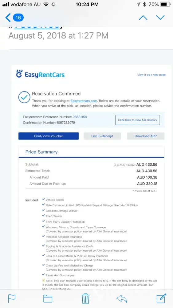 So I rang car hire desk they answers and said they didn’t have a booking and to go back to easy car they said could hire me a car but would have to pay and it was double the price !