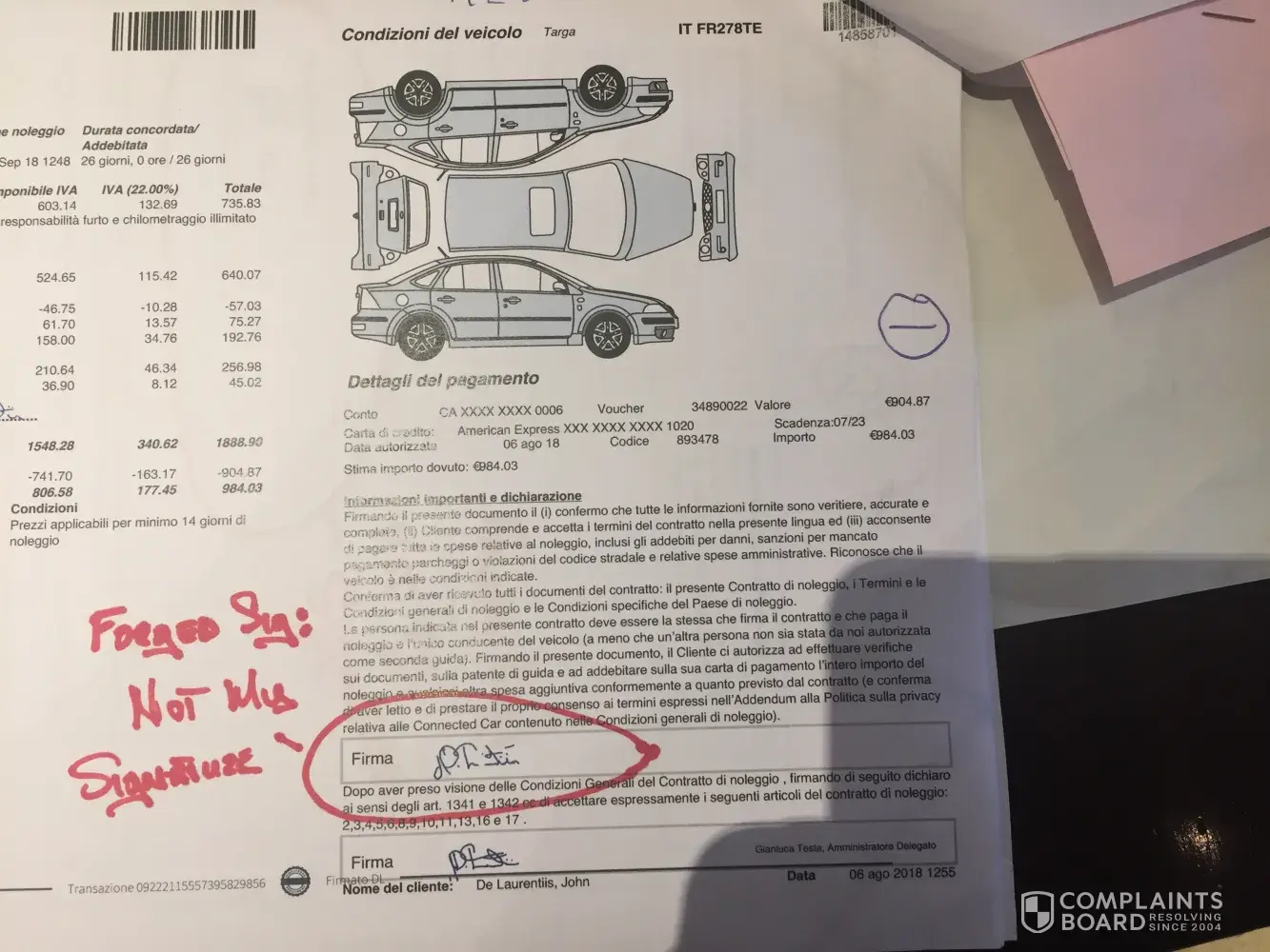 I was under the expressed impression that my Easycar Rental was prepaid in full. Avis/Budget in Rome Airport ask me for my car for a security deposit. Instead, on return of my car rental, they charged $1, 417.17 for a full rental. So I investigated with Avis North America when I returned home and they stated that it was the correct charge. Avis case#36502675CA6. They sent me copies of the contract during the pick up and I noticed they forged my signature on two documents and double charged me! I now want to know why I booked with you and paid all charges in full upfront, only to be charged again at the Avis/Budget counter in Rome? Please contact to discuss at [protected].
