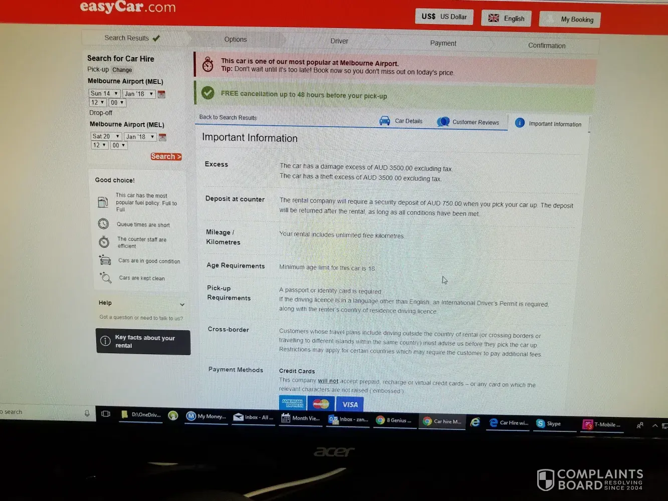 I booked flights with easyJet to Malaga. We have travelled with easyJet many times. I then looked at booking a car. Again I have booked car rentals many times, in many countries.