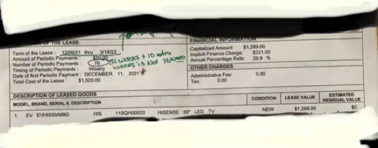 The real problem is I told them I wanted that one because I could double payments and have it paid off in 12 months. Being told I was getting a better deal on three broken tvs and one 1 inch bigger then one I wanted. . Full on con job. Second they saw I was in panic and desperately needed a tv. Let’s lie to him cause they knew I had buy it anyways