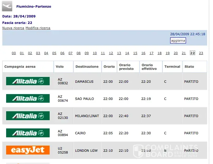 So I went to ADR (the company which manages Rome's airports) to complain about the wrong time schedule but they said that it wasn't (of course!) their fault since they only display airlines feeds.