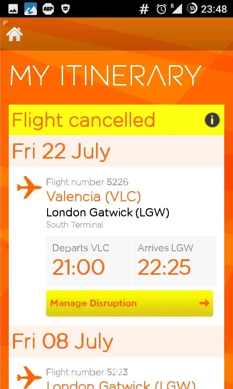 I had flights (4 number) cancelled by EasyJet on the evening of the 12th June when we were waiting to board our flight home from Gatwick airport.