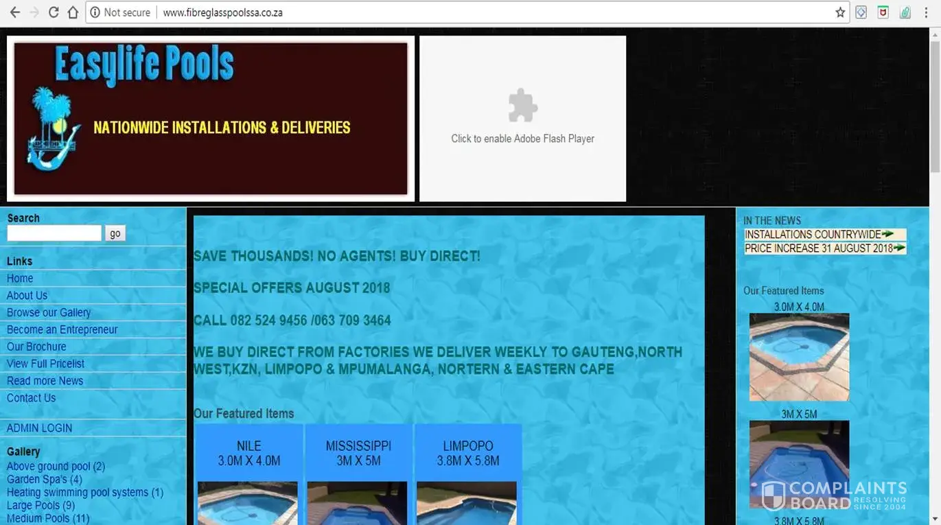 The First pools was only delivered in late February 2018 and the second pool was never delivered. Mind you I'm also in business and I was purchasing these so as to fulfill an order from a client. After a lot of empty promises to deliver the second pool, the client ended up cancelling the order, hence I also cancelled the order with fibre glass pools SA. The order was cancelled around May/June. They promised that they will refund the money for the pool which is R74 000.00. We are now in October and they still have not refunded. Their number is hardly answered and what is baffling now is that their website has changed names to EASYLIFE POOLS. They guys at Easilife claim they are not the same company.