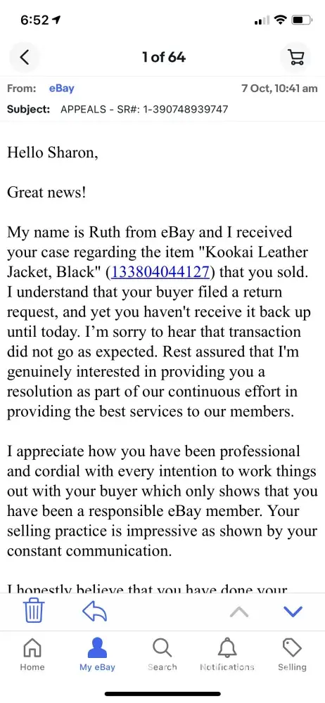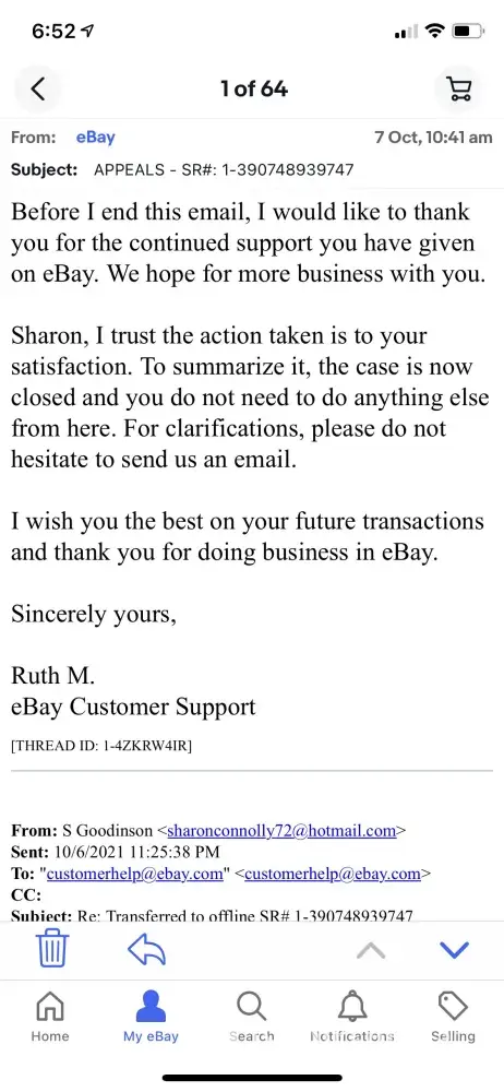Desired outcome: Response from eBay