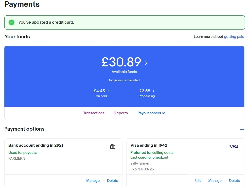 For the past two weeks my account has been held in abeyance by eBay handlers who refuse to take note that all of the payment details are updated and the same name as is on the account is also on the payment details etc etc...