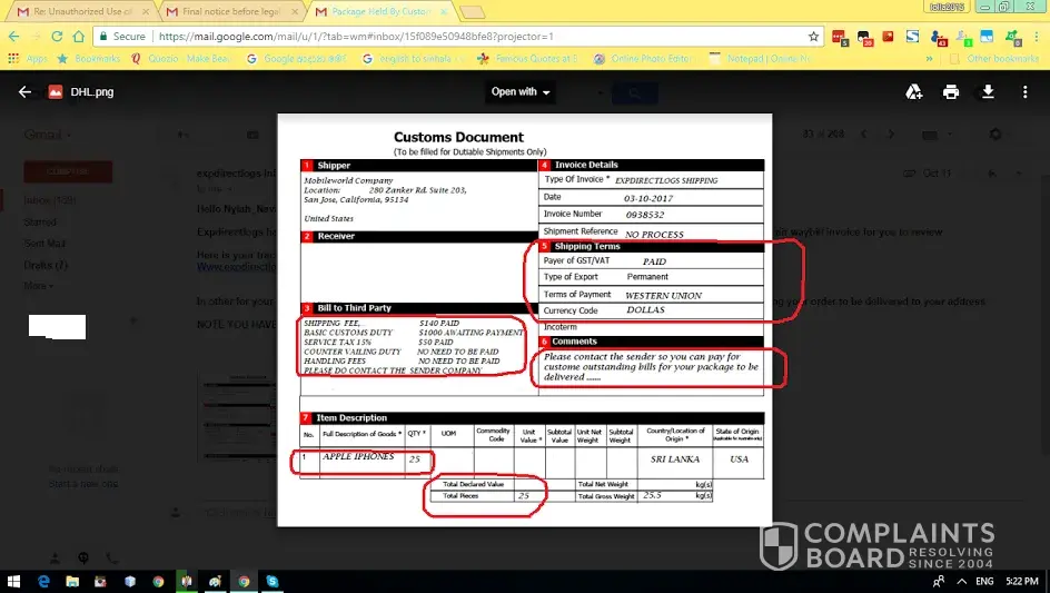 And it seemed fine until I was told that instead of using DHL to ship the items, he wanted me to use his preferred shipping company, and the red flag came when I received an email from the shipping company that they only accept international payments via western union.As far as I know when scammers want to get money and they don't want to be traced and get caught; certain payment options like western union make much easier for them to avoid being traced by.
