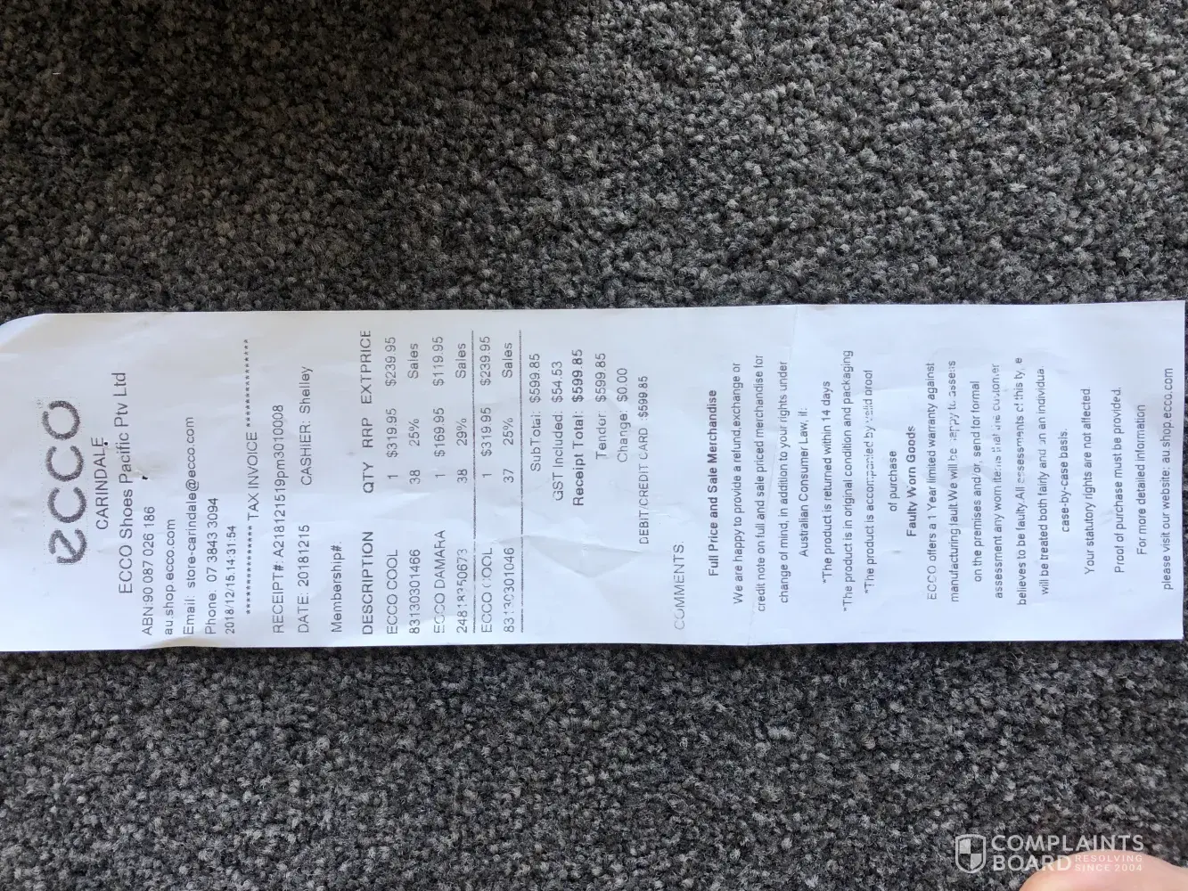Recently, I have purchased three pairs of shoes from ecco Australia from your Brisbane retailer in Carindale shopping centre for my wife and my mom.