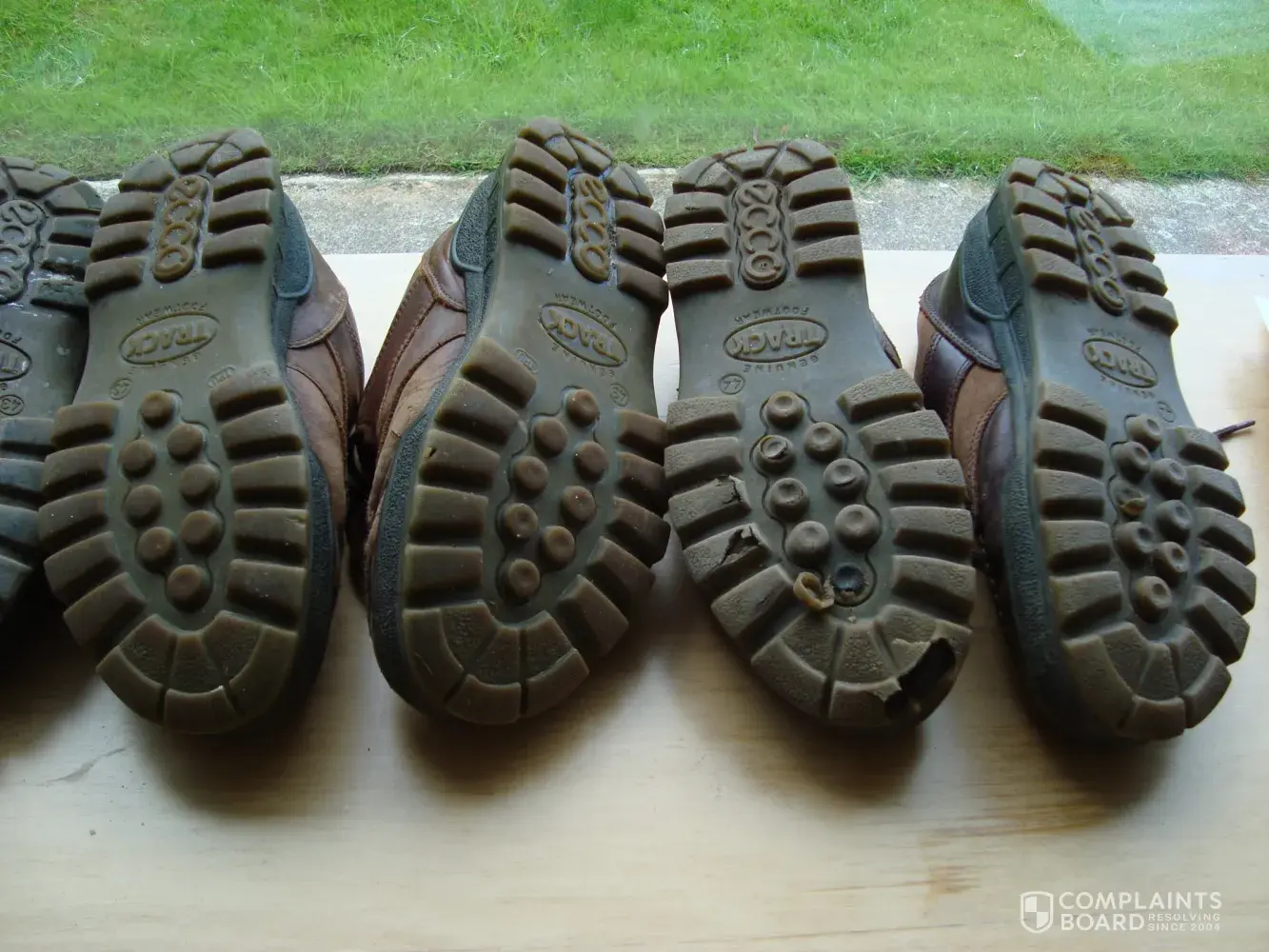 I've bought four or five pairs of Ecco Track shoes over the years because they were especially cushioning for my disabled ankle. That the soles finally started to break up has been hardly surprising considering the punishment they endured, but my latest pair were not nearly as robust. The plastic soles literally ripped open. Ecco don't offer a repair service, and I couldn't prove when they were purchased as they were a gift, but Ecco recommended a shoe repairer who, surprise-surprise, features a resoled pair of Ecco Track shoes on its home page! Has the manufacture moved east to save costs, and have standards lapsed? The photos show my new pair of Eccos on the right. The pair on the left have seen a good year and a half more wear! From now on I'll be looking elsewhere.
