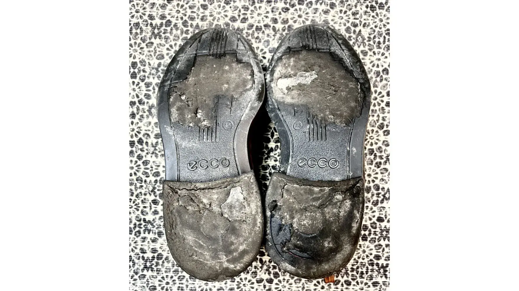 When I returned home I took the boots off to clean the soles and I saw they had disintegrated.