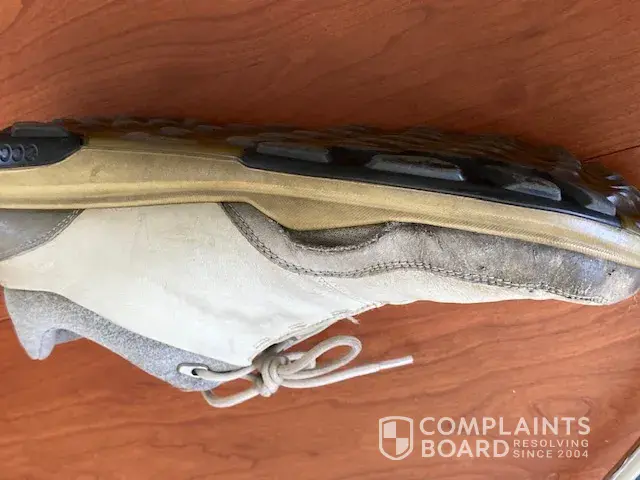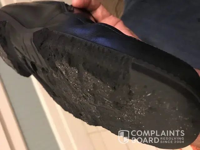 Desired outcome: Coupon for new pair, sole replaced or reimbursement
