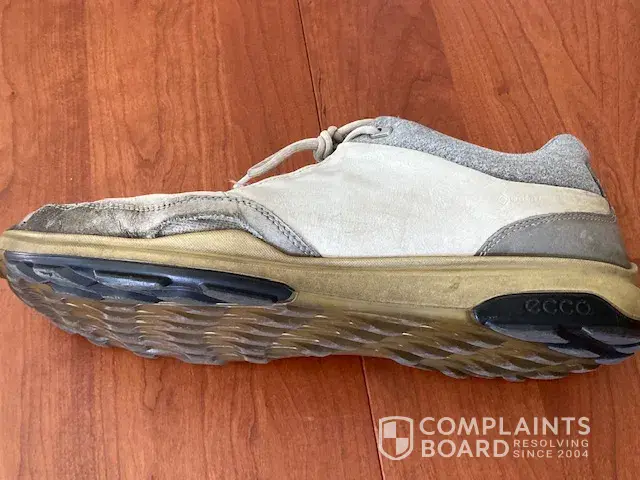 The pair I'm complaining about I bought in the Ecco Factory Outlet in Gunwharf Quay in Portsmouth U.K. when I was visiting my partner's aunt. We both tended to buy our shoes there. I cannot remember when I bought them but probably 5/6 years ago. I no longer have the receipt.