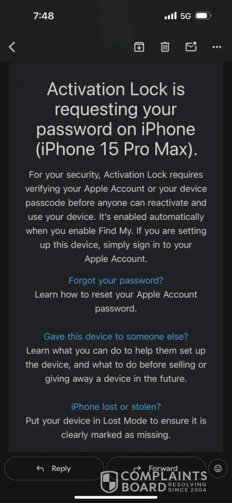 Desired outcome: Monetary compensation equal to the price I paid for my phone retail which was $1200